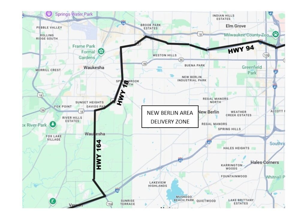 We also serve East Troy, Mukwonago, Big Bend, and Elkhorn areas that are within 5 minutes of Hwy 43.